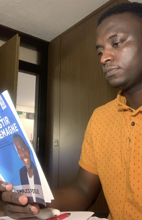 1) Quand il parle du livre dans la vidéo, le livre en question doit être affiché d’un côté de l’écran, et lui-même de l’autre côté. Autrement dit, l’écran est divisé en deux : d’un côté, on voit le livre, et de l’autre, on voit la personne.